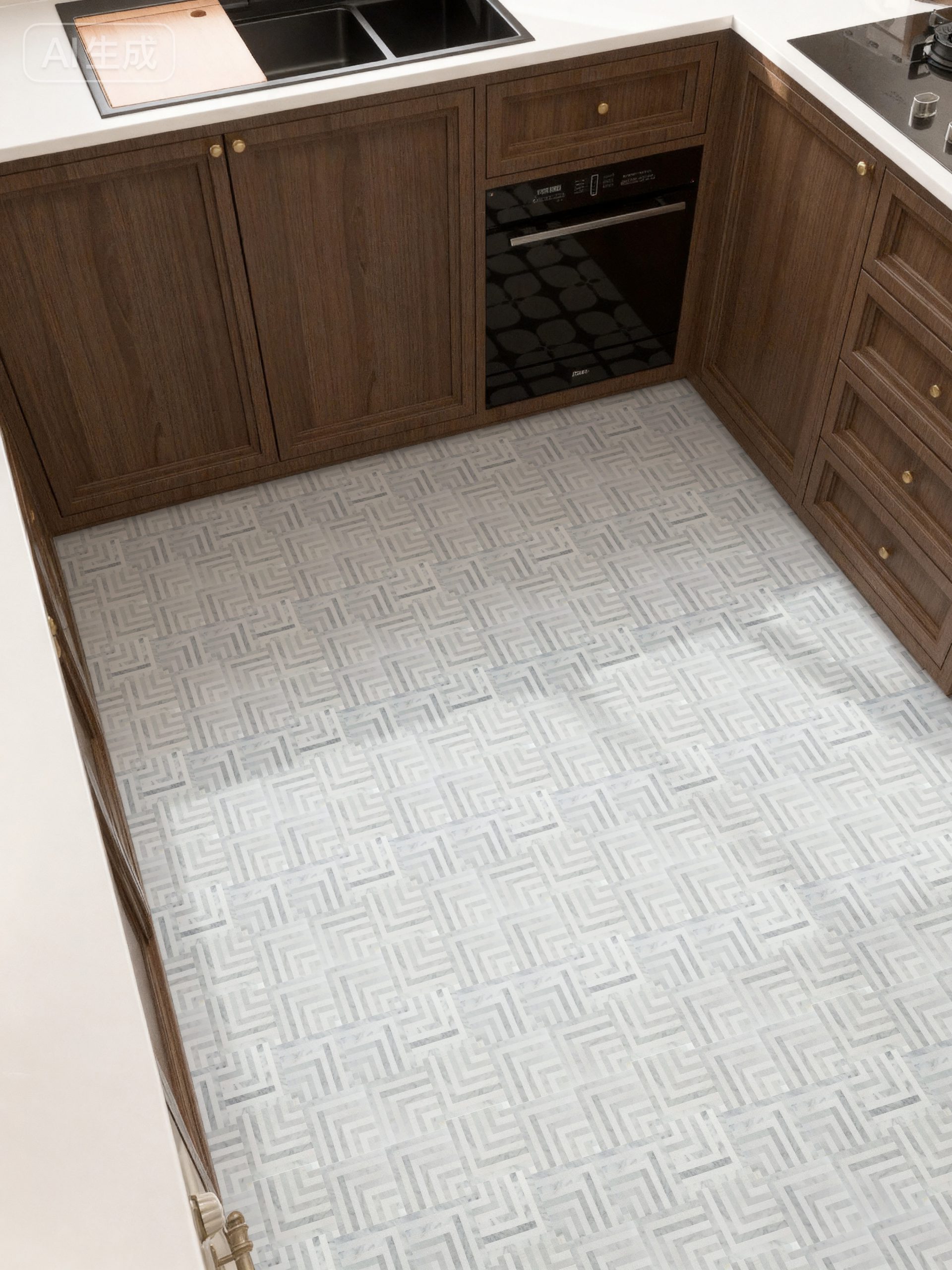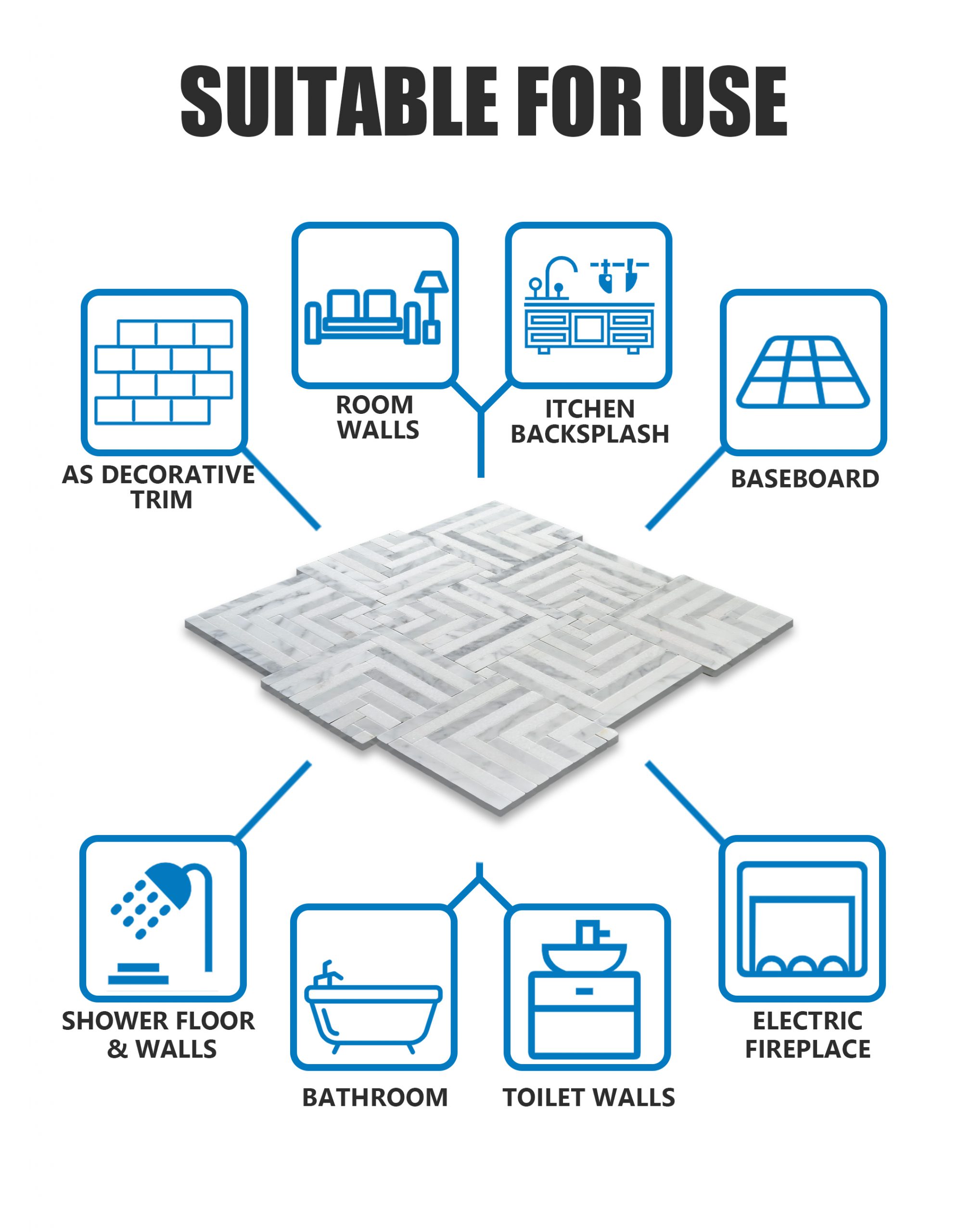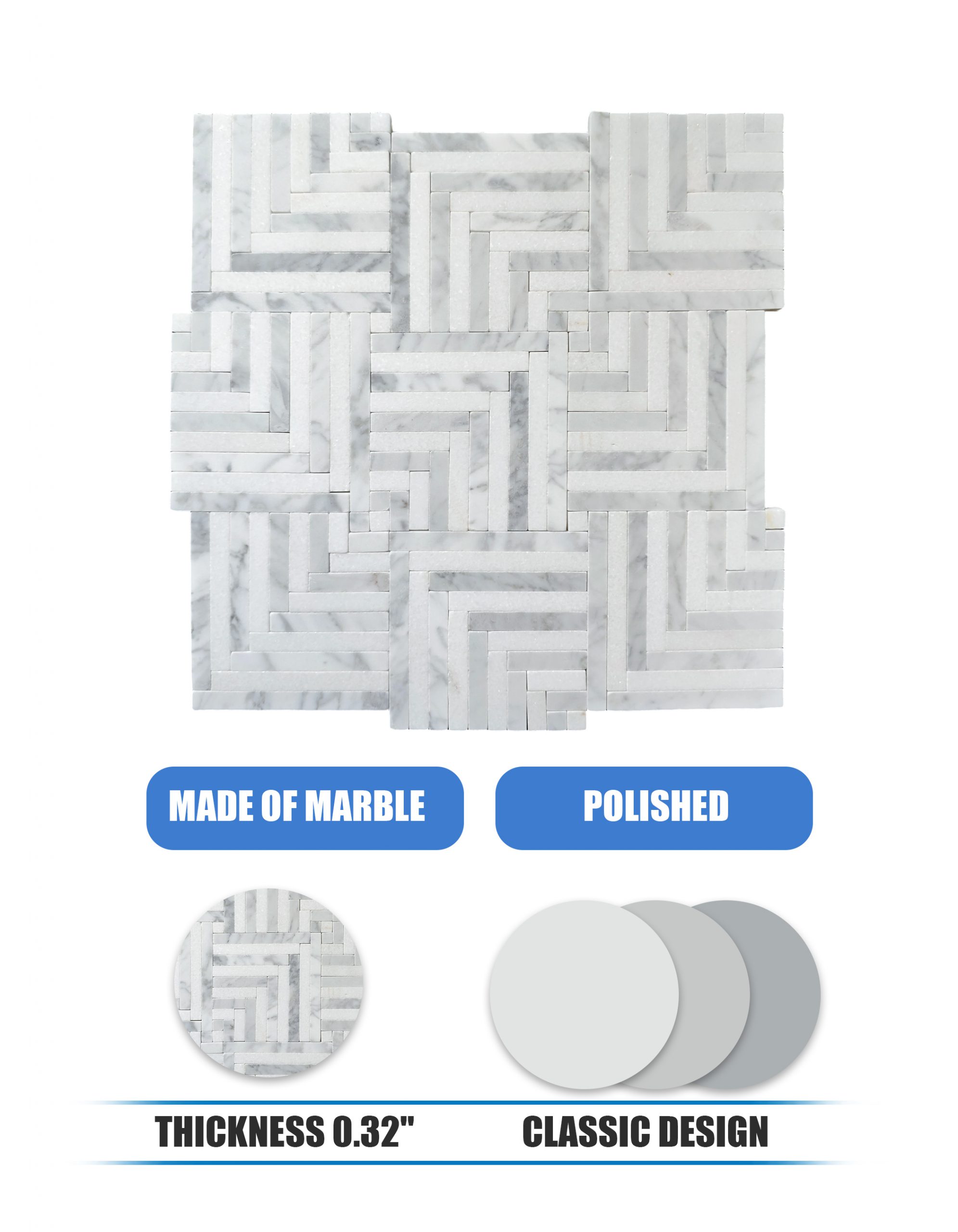 LS1 – Мраморная мозаика с геометрическим узором из белого Тасоса и белого Каррары: Чистота, яркость и вневременность