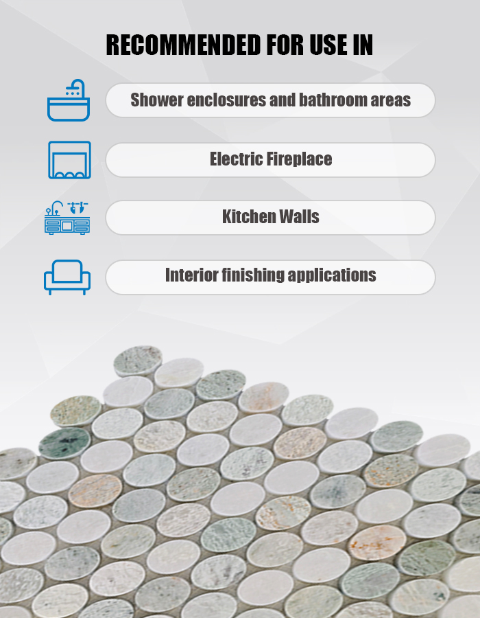 - Материал: Мраморная мозаика «Зеленая жемчужина» (Green Pearl Marble Mosaic)