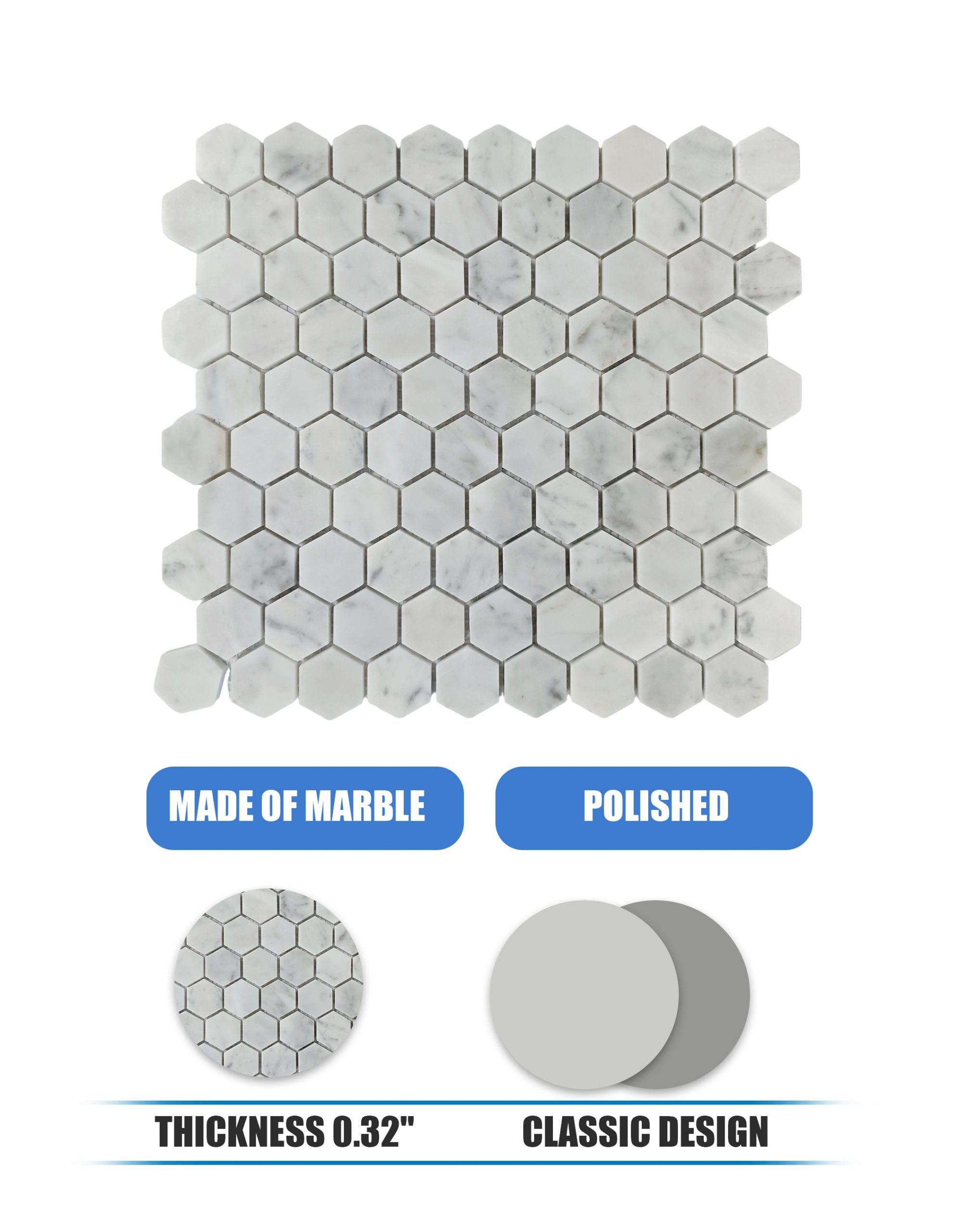 MW12H – Матовая шестигранная мраморная мозаика из белого Каррарского мрамора: Вневременная матовая элегантность