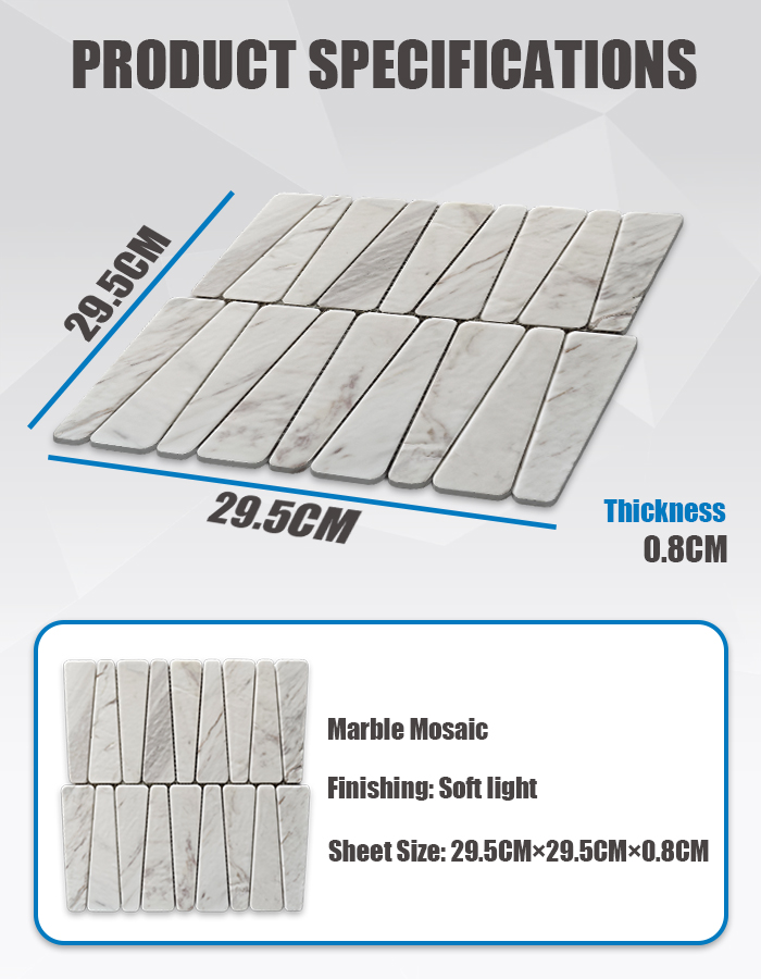 Эта мраморная мозаичная плитка сочетает в себе приглушенную отделку «мягкий свет» и органическую красоту натурального камня, что делает её идеальной для проектов, требующих одновременно утонченности и практической функциональности. Каждый предварительно собранный лист имеет размер 29,5 см × 29,5 см и толщину 0,8 см, что обеспечивает бесшовную укладку и целостный, индивидуальный вид для различных внутренних поверхностей .